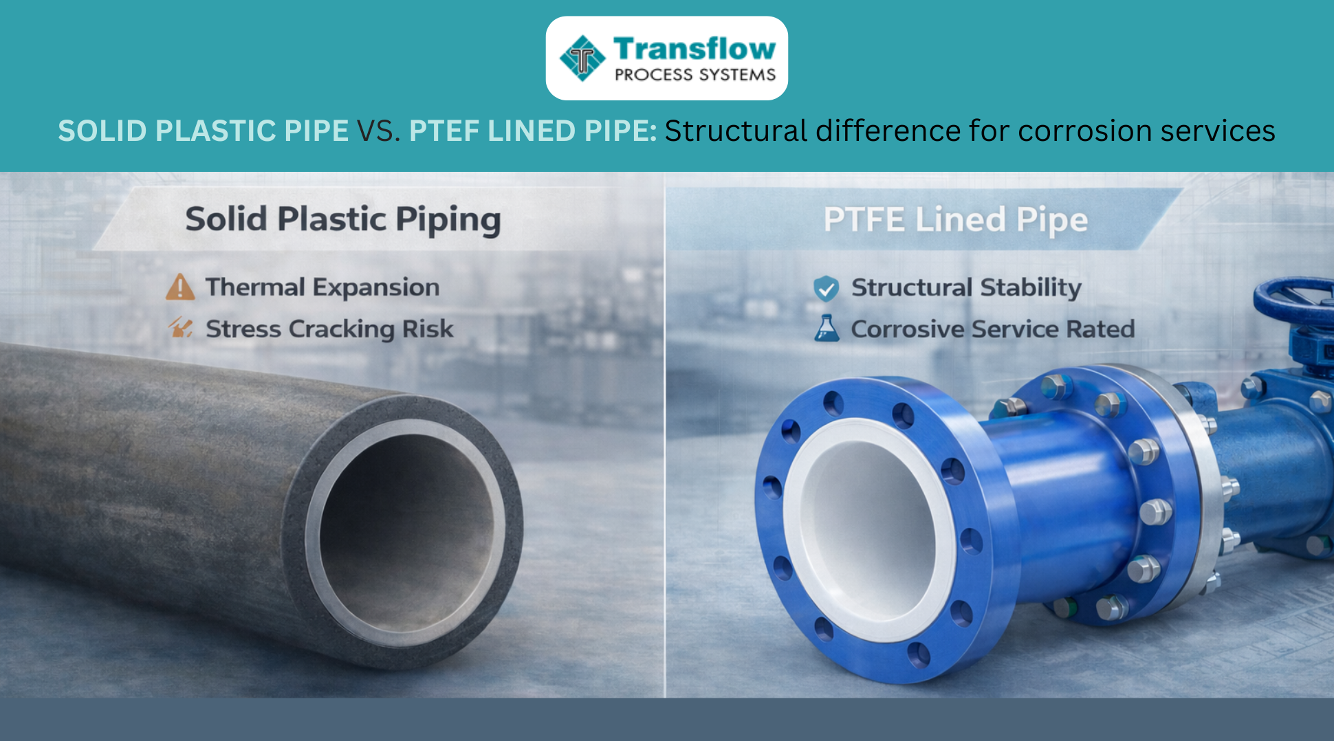 At Transflow, we view material selection as a structural decision, not just a chemical one. This guide breaks down the engineering criteria for upgrading from commodity thermoplastics to PTFE lined pipe for critical corrosive service piping.