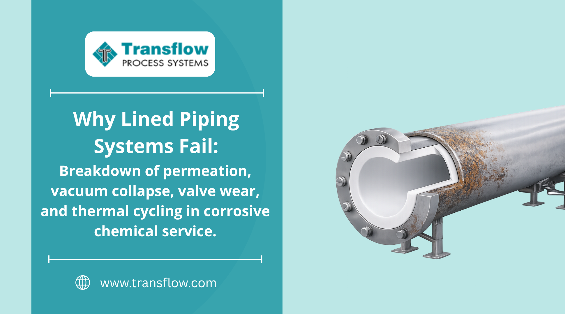 Explanation of how permeation, vacuum collapse, valve wear and thermal cycling cause lined piping failures in corrosive chemical service plants failures